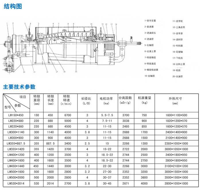 1、转鼓、螺旋等主要零件采用耐蚀不锈钢制造。