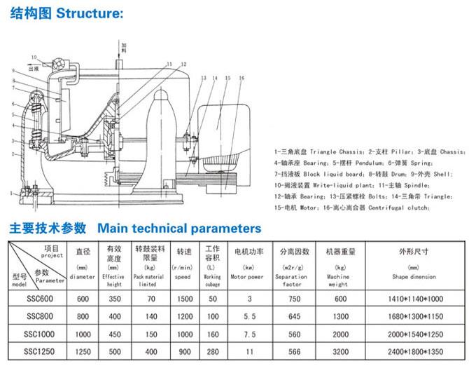 SSC型离心机为三足式上部人工卸料沉降离心机,该系列离心机转鼓壁上无孔,属沉降型转鼓,操作维修方便。主要适用于固相颗粒细小,悬浮液粘性较大,过滤介质再生困难,且含量较少的悬浮液的固液分离,该机型符合GMP规范设计。